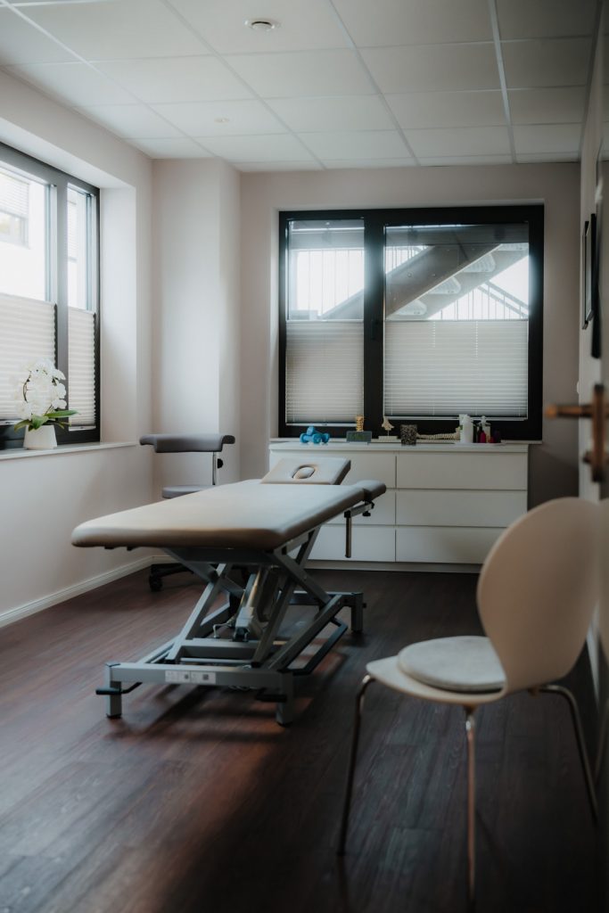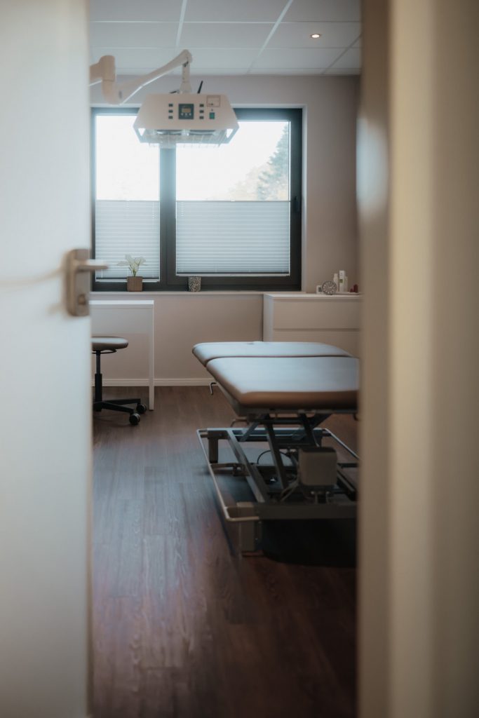 Lassen Sie sich in einem unserer acht Behandlungsräume oder dem großräumigen KG Geräteraum behandeln.